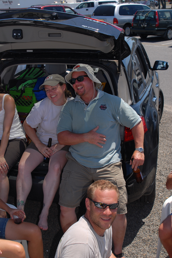 Hiding in the shade of Arin's SUV