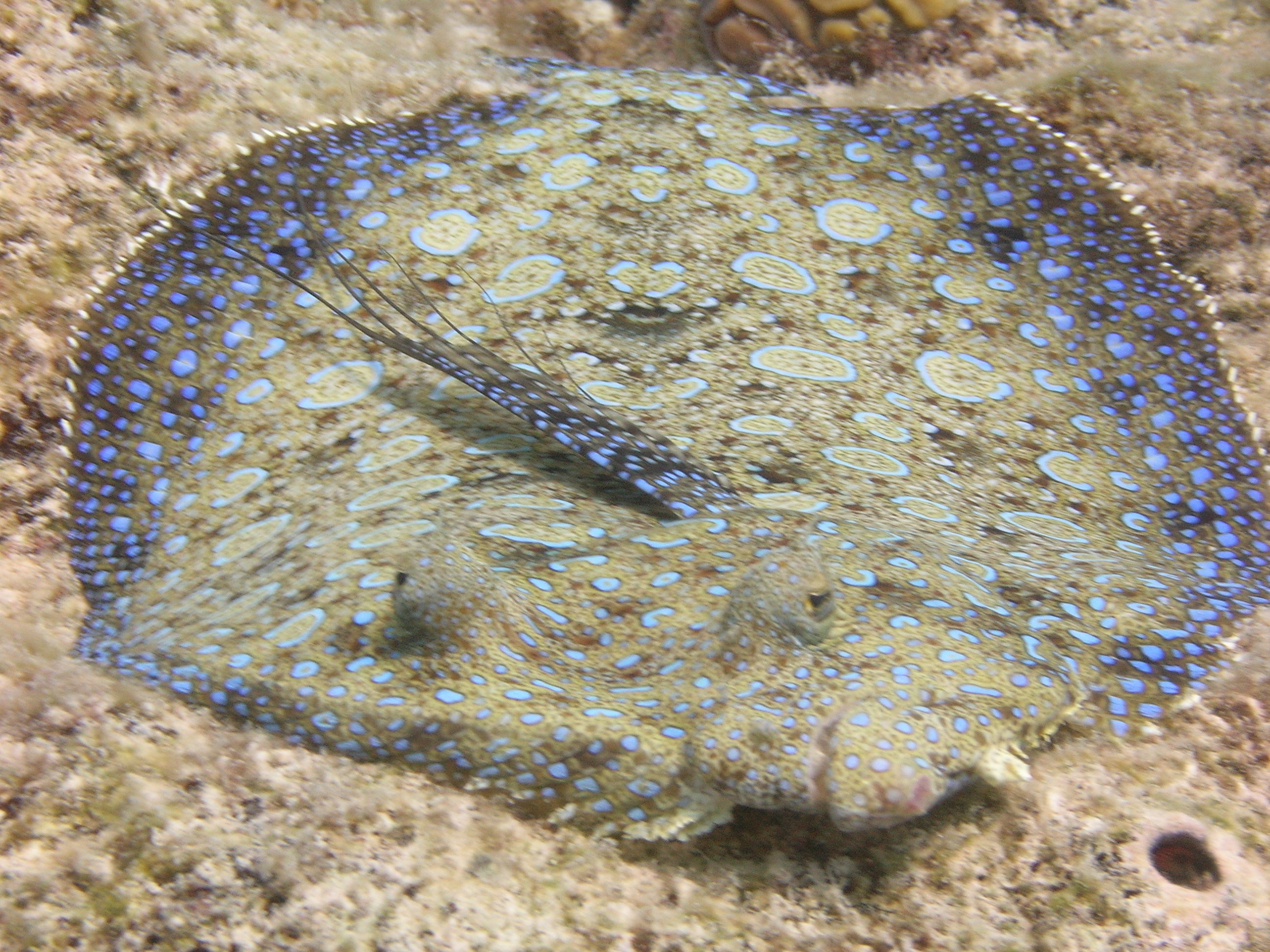 Peacock flounder can change color to match the background